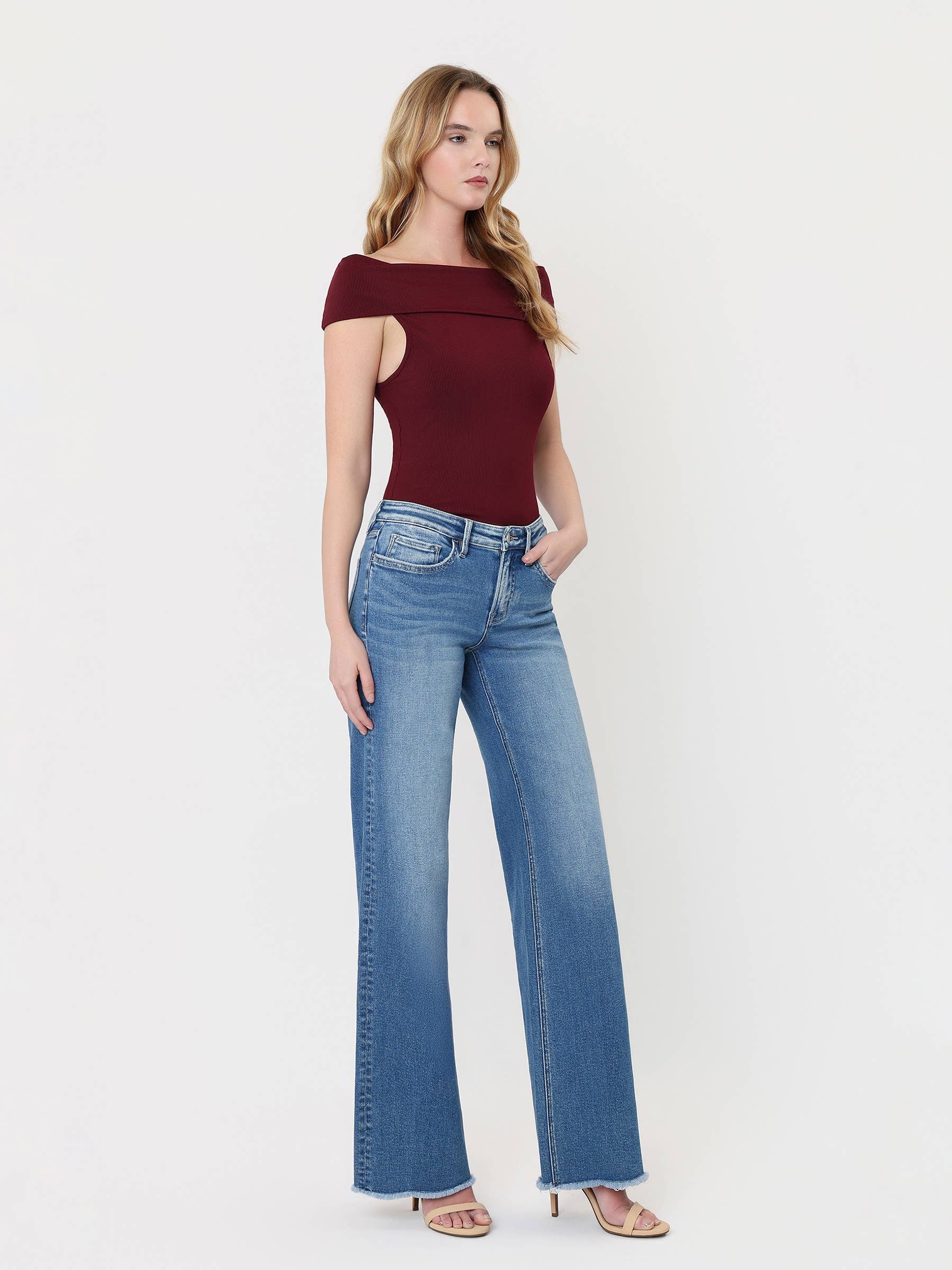 Mid-Rise, Raw Hem, Medium Wash Jeans