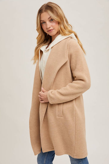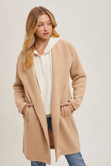 The open front knit coat jacket combines comfort and style for a versatile layering piece. This jacket features an open front design, making it easy to slip on and off, and its knit fabric provides a cozy feel. With its relaxed fit and longline silhouette, it's perfect for adding an extra layer of warmth without compromising on style. Ideal for both casual and dressier occasions, this knit coat jacket is a must-have addition to your wardrobe.